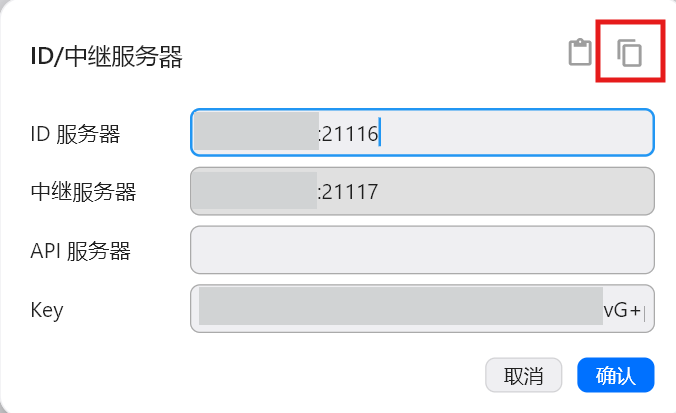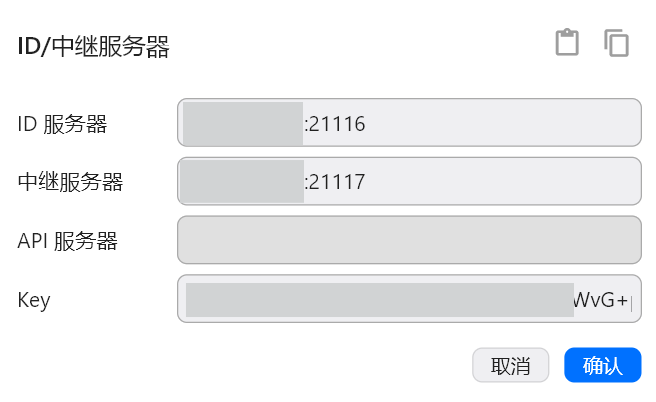 我们通过docker部署好服务后会在hbbs目录下生成一个.pub类型的文件,打开后复制里面的内容到Key这一栏里面即可